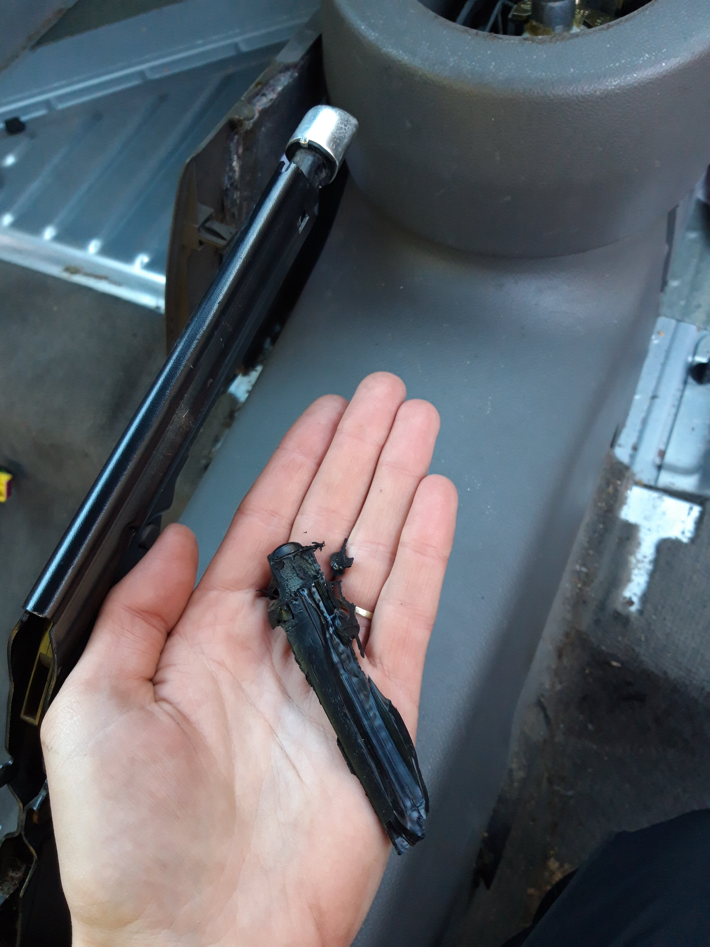 Update, da ich vor geraumer Zeit einen netten "Spender" für die komplette Schaltung gefunden habe: Für das Entfernen/Anbringen der Schaltseile müssen lediglich die Haltescheiben entfernt werden, diese können wieder verwendet werden. Dann die Seile einfach runter ziehen (beim Schalthebel sitzen die recht fest drauf). Der Schalthebel kann mit etwas Geschick entfernt und eingesetzt werden, ohne die Gabel entfernen zu müssen. Ich hätte sie gerne entfernt, weil ich eigentlich auch die Feder tauschen wollte, leider reagiert der Schraubenkopf bereits beim Anblick eines Schraubenziehers mit totaler Selbstauflösung. Basierend auf der Explosionszeichnung hatte ich auch davon abgesehen, diese rauszubohren. Wenn ich eine Werkstatt gefunden habe die das Eckige dann noch in das Runde einbaut, kann die aufbereitete Verkleidung auch wieder rein. (Ja, das silber ist teils nicht so gelungen)....