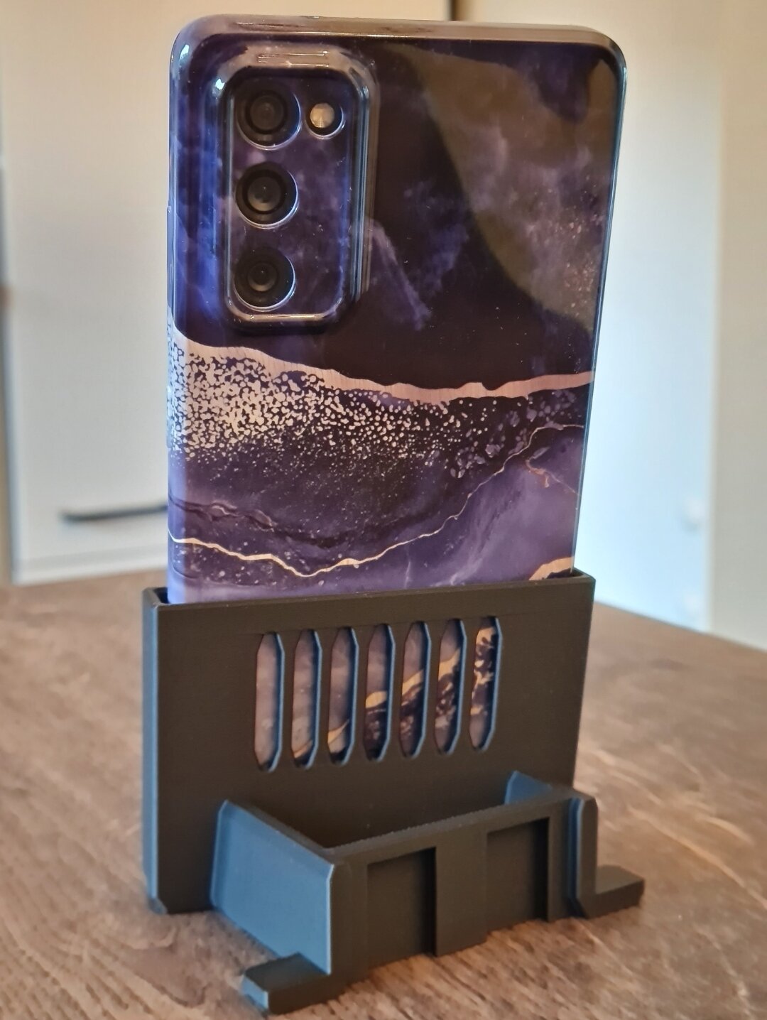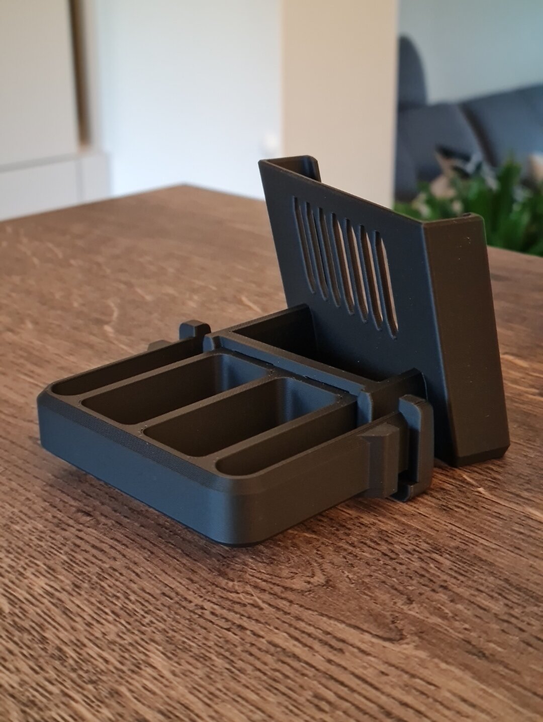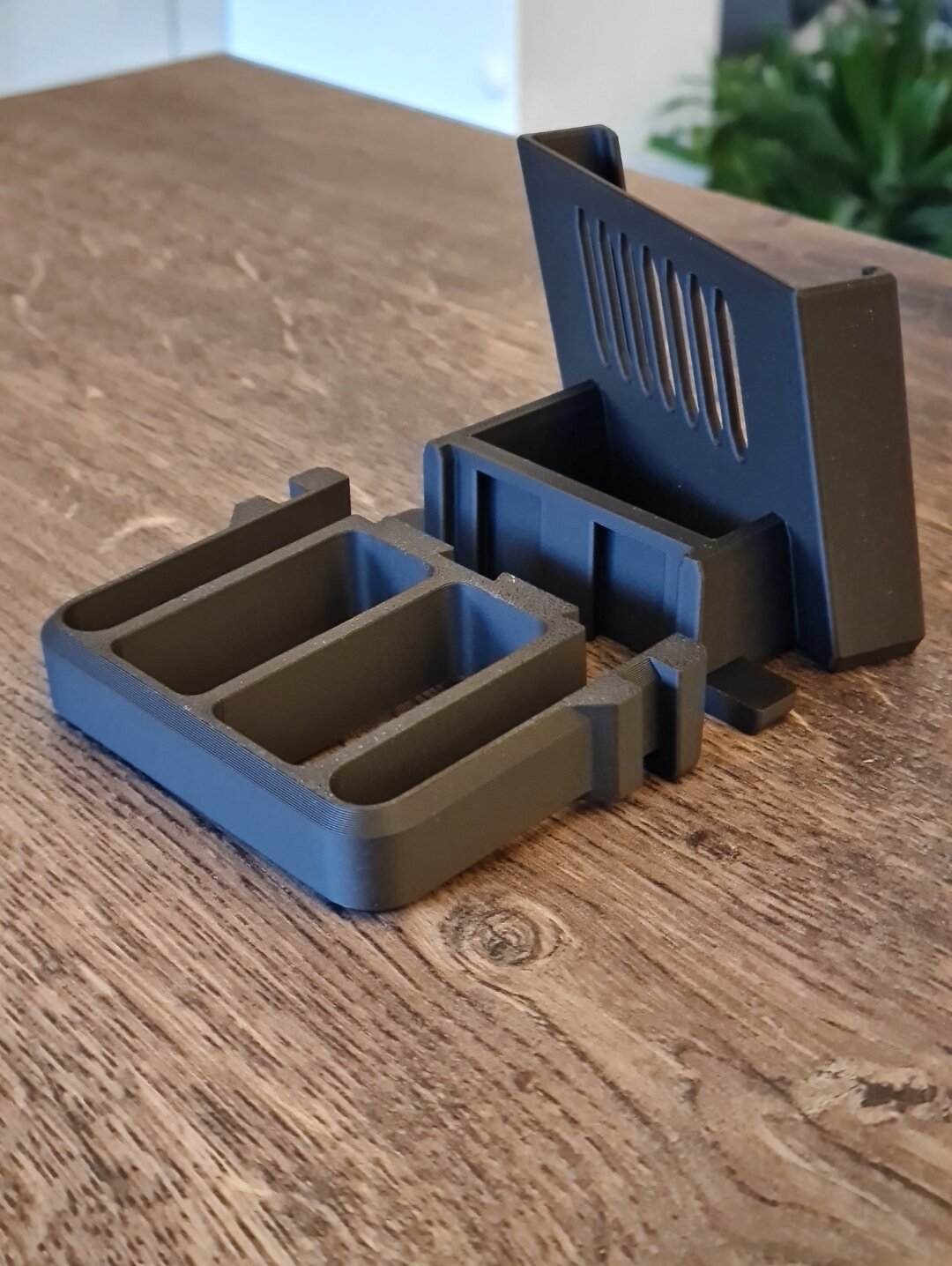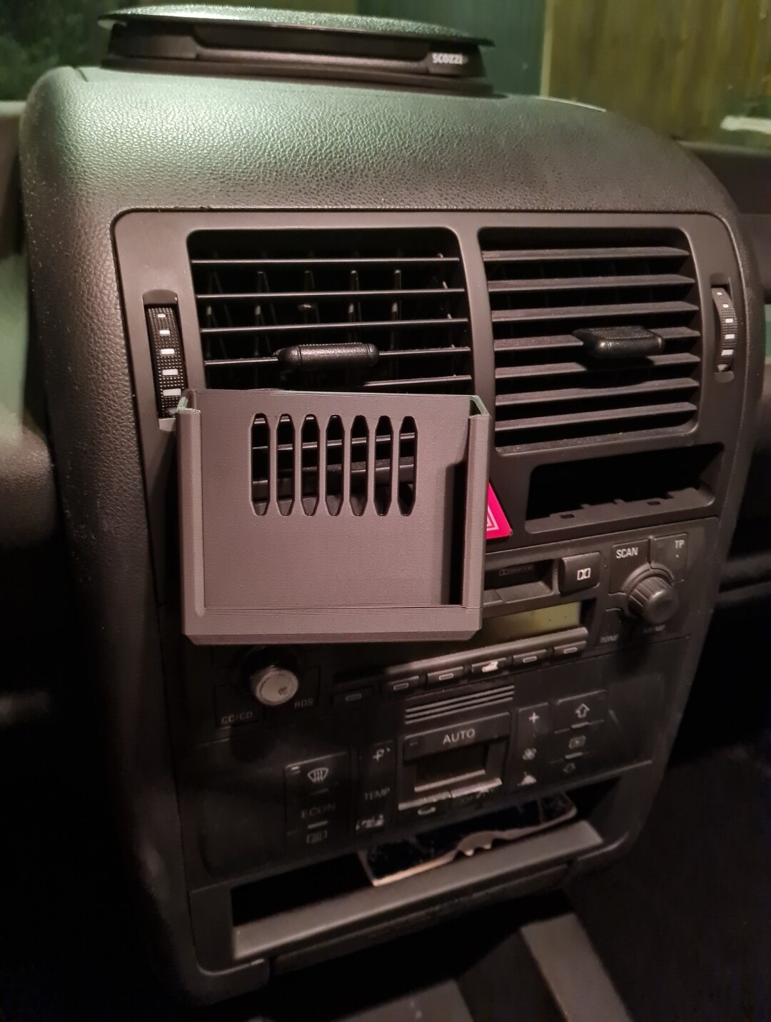 Hallo zusammen, nach Audi A1 Mittelarmlehne und individualisierbarem Ablagefach auf der Mittelkonsole, habe ich nun eine Handyhalterung konstruiert, die im Austausch für einen ausfahrbaren Cupholder eingesetzt werden kann. Im Vergleich zu den üblichen in der Breite einstellbaren Handyhaltern, ist meiner starr und muss entsprechend der Handyabmessungen inkl. Schutzhülle angepasst werden. In meinem Fall ist das ein Samsung Galaxy Note 20 mit Schutzhülle. Der Aufbau besteht aus drei Teilen. Das erste ist ein Adapter (rot im Bild) der beim Austausch gegen den Cupholder eingesetzt wird. Teil zwei und drei (personalisierte Handyaufnahme) werden zusammen gesteckt und anschließend in die rote Aufnahme. Hier könnte man theoretisch auch andere Einsätze verclipsen und jederzeit werkzeuglos wieder ausclipsen.