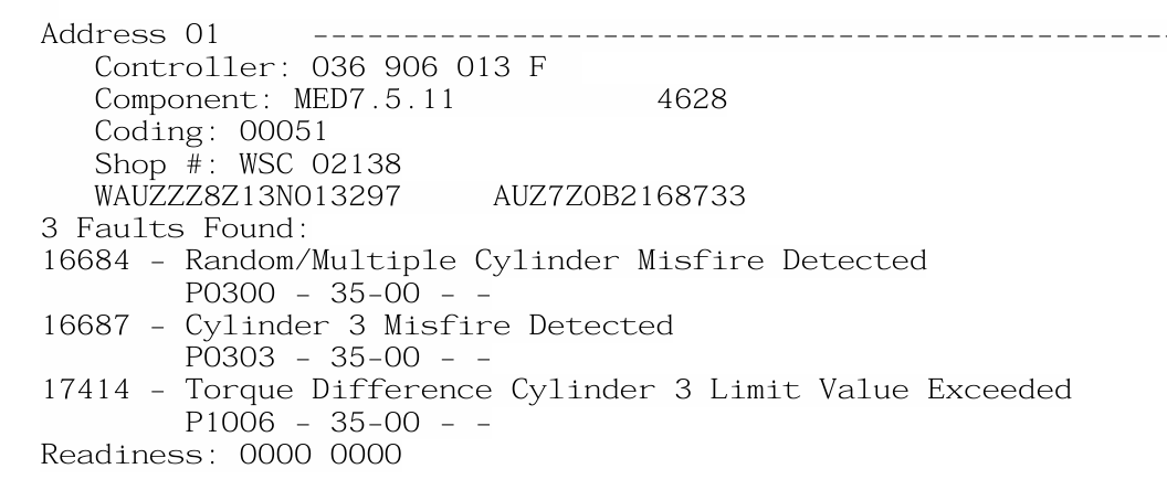 Es hat ziemlich genau ein halbes Jahr gedauert bis der Audi soweit fahrtüchtig war und ich eine Gelegenheit hatte einen Versuch zu unternehmen auf langer Strecke die Einspritzdüsen (vor allem die defekte Einspritzdüse des 3. Zylinders) mittels eines entsprechenden Reinigers frei zu bekommen. Zum Einsatz kamen zwei verschiede Kraftstoffzusätze namhafter Hersteller (darf man hier die Namen nennen?). Am vergangenen Wochenende habe ich mit dem Wagen eine Strecke von 2 x ca. 670 km, fast ausschließlich auf der Autobahn, zurück gelegt. Da es das verlängerte Wochenende war, war neben mir auch die halbe Republik auf der Autobahn wodurch wiederum verschiedenste Geschwindigkeiten und Lastszenarien sich einstellten. Am Vorabend die erste Dose Reiniger reingekippt und voll getankt, am nächsten Morgen den Motor angelassen und gleich die erste Überraschung: er lief auf Anhieb ruhig und ohne Aussetzer. Ich war echt erstaunt und wollte tatsächlich glauben, dass die paar Kilometer von der Tanke bis nach Hause und eine Nacht "Einwirkzeit" ein Wunder vollbracht hatten. Der Motor lief wirklich so, wie nie zuvor, beschleunigte bei moderaten Lasterhöhung wirklich schön von unten - fast wie bei meinem AGG . Alles war gut bis der Motor die Betriebstemperatur erreicht hatte. Noch in der Stadt, als ich im dritten oder viertem Gang stärker beschleunigen musste hat die MKL angefangen zu blinken. Das hat sich noch paar Mal wiederholt, allerdings lief der Motor immer noch spürbar besser als sonst. Auf der Autobahn fuhr ich mit unterschiedlichem Tempo - vom stockendem Verkehr und Stillstand im Stau bis ca. 190 km/h (Tacho). Mehr hatte ich mir und dem Motor nicht getraut, auch wenn der Gaspedal noch nicht durchgedrückt war. Tempo 200 in der kleinen Kugel - dazu noch mit OSS - macht nicht wirklich Spaß. Jedenfalls hatte ich mehrmals Gelegenheit längere Abschnitte mit einer Geschwindigkeit zw. 150-170 km/h zu fahren. Nach mehrfachen Blinken kam dann die MKL und erlosch nicht mehr. Ich hatte während der Fahrt die Fehlercodes immer wieder gelöscht, sie kamen aber nach kurzer Zeit zuverlässig zurück - auch wenn die Aussetzer bei hoher Drehzahl nicht spürbar waren. Bei Lasterhöhung bzw. Beschleunigung von niedrigen Drehzahlen dagegen schon. Es war immer der Zylinder 3. Auf der Rückfahrt, nach dem dritten Tanken und dritter Zugabe des Injektorreinigers habe ich dann auch noch die Zündspulen und Zündkerzen der Zylinder 3 und 2 getauscht. Die Kerze des 3. Zylinder war schwarz und nass, die des 2. völlig in Ordnung (hellbraun bis hellgrau). Trotz des Tausches blieb der Fehler immer beim 3. Zylinder. Es kamen auch noch zwei weitere dazu: Stand Wegstreckenzähler: 214.081 km Stand Wegstreckenzähler: 214.186 km Stand Wegstreckenzähler: 214.539 km Am Montag bin ich noch zu Arbeit gefahren (knapp 10 km einfach, reiner Stadtverkehr). Motor lief auf der Hinfahrt wie zuletzt. Auf dem Heimweg stotterte er in der 30-Zone als wäre am Wochenende nichts passiert. Ich hatte dann keinen Bock mehr, hab den Wagen auf der Straße abgestellt und nicht mehr bewegt. Eigentlich ein klarer Fall: Einspritzdüsen raus und zu US-Reinigung. Meine Frage ist: wie groß sind die Chancen, dass die defekte Düse noch zu retten ist? Ich würde mir gerne weitere gebrauchte Einspritzdüsen "für den Fall des Falles" kaufen und die auch reinigen lassen. Allerdings werden die gebrauchten Düsen, die "beim Ausbau problemlos funktionierten" zu Preisen gehandelt, für die man einen kompletten z.B. Golf mit dem BAD bekommt... .