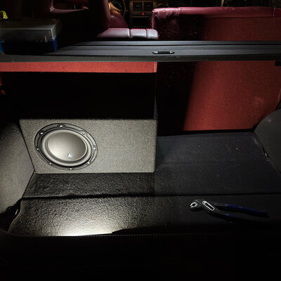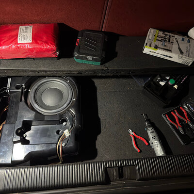 3. Nach dem Motortausch und LLK-Upgrade meines A2, war noch nicht Schluss. Jetzt gab es beim Thema HiFi noch ein Upgrade. Mein A2 hatte original ein Audi-Symphony-Doppel-Din verbaut mit Teilaktiv-Lautsprechern (Blaupunkt Verstärkerchen im Geheimfach). Bereits seit längerem habe ich ein RNS-E mit Mediataste, AMI und Need4Street Bluetooth-Adapter mit vollem Zugriff auf das iPhone (Auswahl nach Titel / Interpret / Genre / Playlists etc) eingebaut. Das hatte so bereits einen ganz guten Klang, jedoch habe ich mir etwas mehr Bassbei höheren Pegeln gewünscht. Da der originale Mini-Blaupunktverstärker im Beifahrer-Geheimfach mit einem reinen Vorverstärker-Signal versorgt wird, habe ich die Kabel des „Line-In“ ausfindig gemacht, und mit einem Cinch-Kabel verbunden. Dafür habe ich ein Mini-ISO auf Cinch-Adapter geopfert / zerfleddert, die Kabel sauber durchtrennt und alles anschließend mit Lötverbindern wieder zusammen gesetzt - inklusive 12V-Remote-Signal. Das Cinch- und Remote-Kabel habe ich unter den Leisten Beifahrerseitig bis in den Kofferraum verlegt. Strom für die kleine Class D Mono Subwoofer Endstufe habe ich passend verkabelt direkt an die Batterie im Kofferraum angeschlossen. Die Kabelenden habe ich mit den passenden Kabelösen mit einer TEMU-16t-Ringösenpresse verprasst. Das sieht mal richtig geil aus (hab leider keine Fotos gemacht). Eine Minifurzi Endstufe (die ist wirklich schön kompakt) von SoundStream (die RSM1-4000D) habe ich erst mal provisorisch in den Kofferraum gelegt. Zuerst hatte ich einen 8“ JL Audio Subwoofer in einem dafür gekauften Gehäuse in den Kofferraum gestellt. Der Klang war top, jedoch störte mich der Subwoofer im Kofferraum. Der war ziemlich schwer und trotz 8“ Subwoofer für meine Begriffe groß. Ich wollte keinen Sub, der meinen Kofferraum verkleinert. Dann bin ich bel YouTube schauen auf ein Video aufmerksam geworden. Darin geht es, wie ein paar Typen „cheap Bass“ in ihre Autos bringen. Sie greifen auf aktive Nissan oder Mazda BOSE-Reserverad-Subwoofer zurück. Die kosten quasi kein Geld und bringen guten BAss in die Autos. Sie zeigen sogar die PIN-Belegung und das soll mit Original-Systemen ganz gut harmonieren. Das hat mich dazu motiviert, mal auf eBay nach gebrauchten Original-Subwoofern zu suchen. Dabei habe ich mich in einen PORSCHE Macan 95B-BOSE-Subwoofer für 70€ verguckt. Der hat ein ziemlich flaches Bassreflex-Gehäuse, welches einen 20cm Subwoofer beinhaltet. Auf dem Sub ist eine BOSE Endstufe, welche ich abgebaut habe. Den Sub habe ich direkt mit der SoundStream Endstufe verbunden. Der Klang / Bass ist wirklich ordentlich und steht dem JL Audio in NICHTS nach. Sicher, der JL Audio könnte lauter spielen, da aber das Audi-System da nicht mehr mithalten kann, reicht auch der Macan-BOSE-Sub (der im Macan laut KI mit 200W RMS angesteuert wird und für das Audi-System immer noch zu viel Power bringt). Die Endstufe habe ich für meine Ohren passend eingepegelt und bin extrem zufrieden. Man kann fast komplett verzerrungsfrei aufdrehen (Bassregler auf Neutralstellung) Weiterhin erwähnenswert ist das niedrige Gewicht des Porsche Macan Subwoofers. Der JL Audio im MDF-Gehäuse bringt sicher 15kg auf die Waage. Das ding ist echt schwer. Der Porsche PlasticFantastic-Sub wiegt irgendwas (gefühlt) um 3-5kg, klingt toll, ist pegelfest und passt locker in den Zwischenboden. Den werde ich noch rundum mit Alubutyl verkleben / versteifen. Mal sehen, was als nächstes kommt. jedenfalls habe ich Alles nur „mal schnell“ eingebaut. Die Endstufe und den Subwoofer möchte ich mit Klett-Verschlüssen im doppelten Kofferraumboden befestigen und alles mit Steckern versehen, um (falls nötig) alles ratzfatz auszubauen. Ich werde weiter berichten