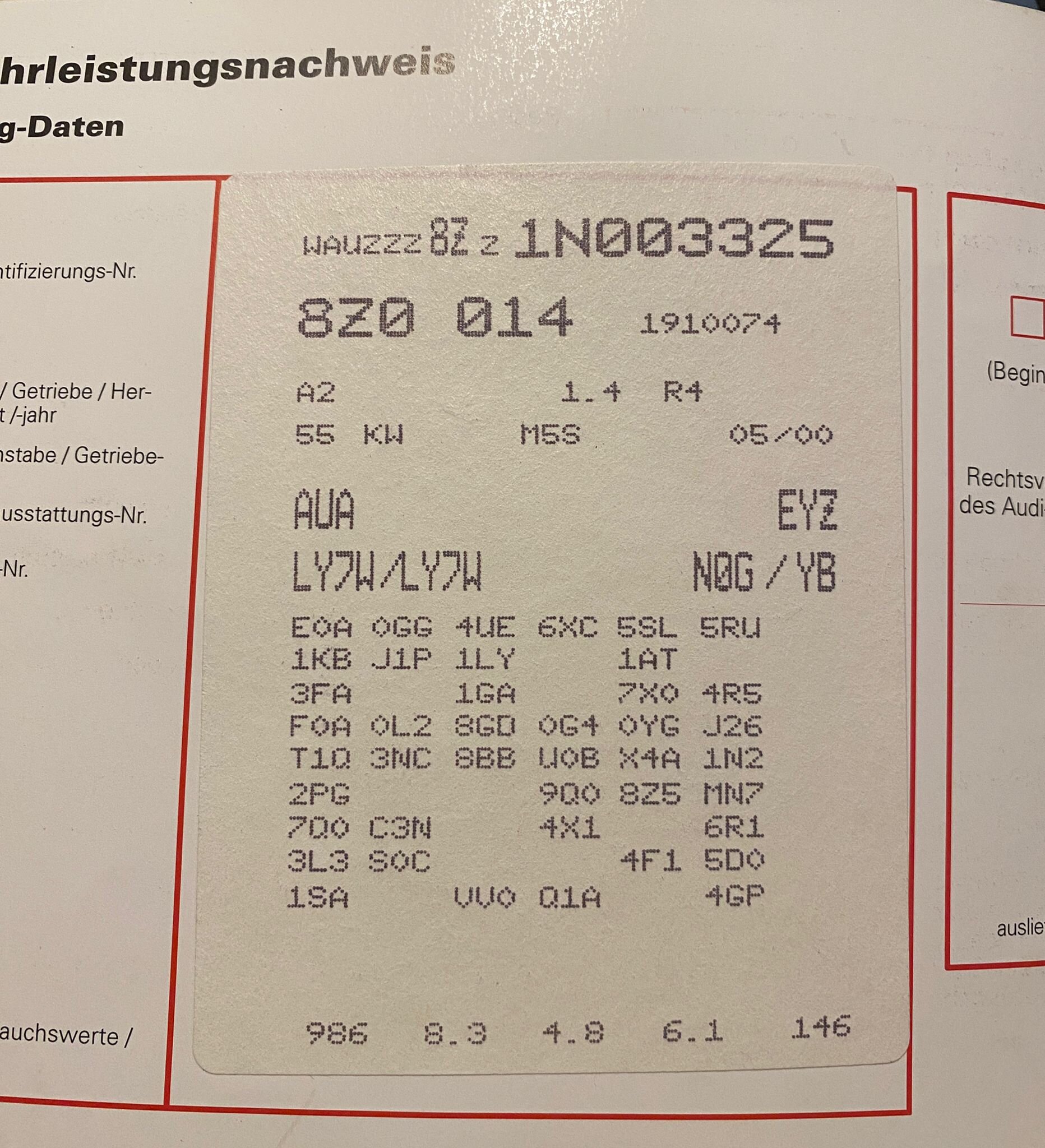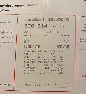 Hallo, ich bin seit Kurzem stolzer Besitzer eines Audi A2 1.4 (AUA) mit knapp 160.000 km. Der Wagen ist komplett fachwerkstätten-gepflegt und macht insgesamt einen wirklich guten Eindruck, umso mehr möchte ich ihn jetzt technisch wieder perfekt dastehen haben. Leider habe ich direkt zwei Themen, bei denen ich eure Erfahrung brauche: 1) Ölpeilstab / Einführtrichter beschädigt Der Vorbesitzer hat offenbar den Ölpeilstab samt Einführ-/Führungsrohr beschädigt. Meine Fragen: Hat jemand die genauen Maße vom Peilstab-Rohr (Länge, Durchmesser etc.)? Könnte man das theoretisch 3D-drucken, ich habe einen Drucker, aber keine Abmaße? Oder hat jemand so ein Teil übrig bzw. weiß die korrekte Teilenummer für den AUA? Ich würde das gerne sauber und dauerhaft lösen, nicht nur provisorisch. 2) Meldung „Heckklappe offen“ in der HU Wenn ich die Heckklappe öffne und wieder schließe, zeigt das Kombiinstrument weiterhin an, dass sie offen sei – obwohl sie korrekt geschlossen ist. Kennt jemand das Problem? Ist das eher ein Mikroschalter im Schloss, Kabelbruch im Übergang oder etwas anderes Typisches beim A2? Freue mich über jeden Hinweis – und bin gespannt auf eure Erfahrungen! Danke euch Anbei ein paar mehr Bilder Infos... Vielleicht kann mir jemand etwas wissenwertes über mein A2 Modell erzählen (siehe Foto)