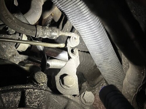 9. Kullungsleitung entfernen 10. Stecker Leerlaufschalter(?) entfernen 11. Stecker Anlasser entfernen 12. Kappe Anlasser entfernen (der gelbe Kabelbilder) 13. Kabel Anlasser entfernen M13 14. Halteblech am Anlasser entfernen M13 15. Obere Anlasserschraube entfernen M18 16. Die beiden oberen Getriebeschrauben entfernen M18 (die hintere ist schwer zugänglich und könnte auch nach ablassen des Getriebes entfernt werden, da sie dann leichter zugänglich ist) -