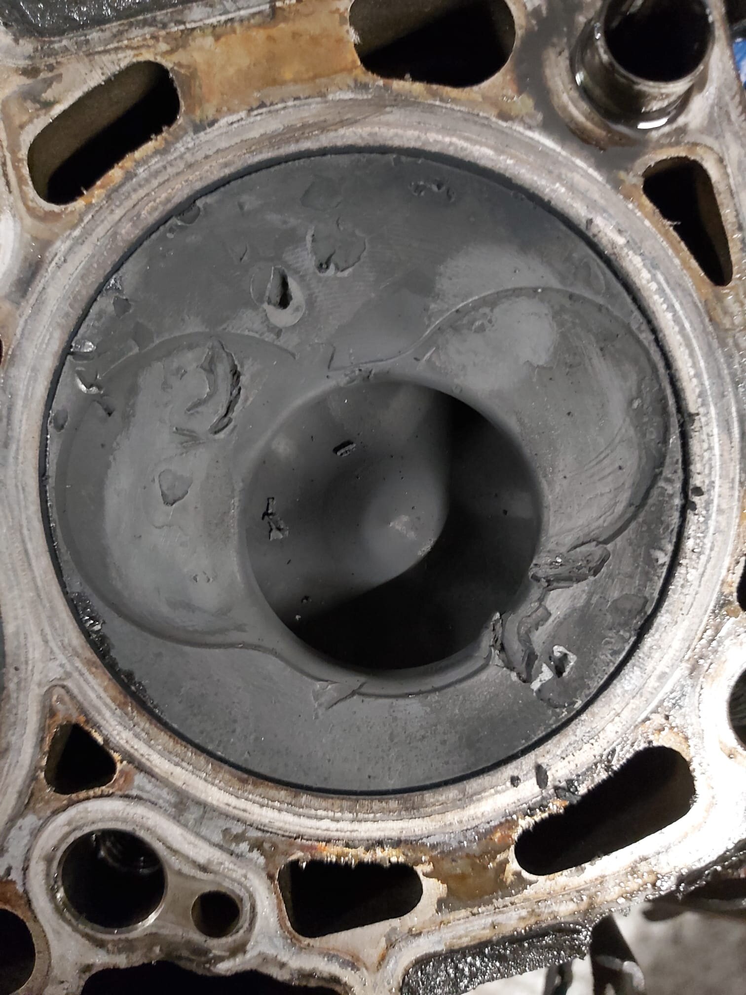 bilder.....die schäden am zylinder 3 (erstes bild) sollten vom vorgänger sein.der hatte nen turboschaden.... der halbe motor ist mit dichtmasse zugeschmiert...leider sieht man sowas erst beim zerlegen bei nem schaden..denke mein bruder hätte den nie gekauft...egal,jetzt ist er bei mir und wird aufgebaut.