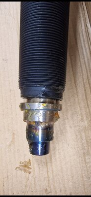 Muss ja auch eigentlich weil du ja sonst die Antriebswelle nicht rausbekommst. zurück zum Thema: Ich hab mal ein Bild von meiner getunten Schlagspindel: Da ist ein CroMo Ring (ziemlich hart, von nem alten Fahrradgabelschaft) angeschweißt, damit ich volle Kanne über das Feingewinde vorspannen kann und dann im vorgespannten Zustand draufhämmern kann. Ist gut eingefettet, damit die Anlassfarben so schön bleiben und die Reibung beim Vorspannen gering bleibt
