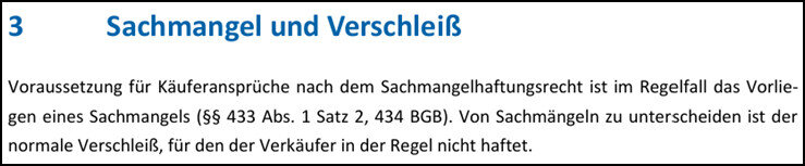 Hallo, schön zu sehen, dass Du von „mangelfrei“ zu „frei von Sachmängeln“ geändert hast. Ich habe diese wichtige Differenzierung von Anfang ausgeführt. So bedürfen die Inhalte meiner Posts auch keiner Korrektur. Zu Deinem Link: Sehr aussagekräftig! In dem PDF steht auf Seite 101 exakt das, was ich am 19.02. gepostet habe, von Dir aber am 20.02. mit dem Statement „Nein.“ kommentiert wurde. Schauen wir mal konkret: Die Seiten 117 bis 129 stellen Urteile vor, bei denen Mängel nicht als Sachmangel anerkannt sondern dem normalem Verschleiß zugeordnet wurden. Hier mal ein paar knackige Auszüge (am besten aber selber mal lesen): Überspringen der Steuerkette bei einem 5 Jahre alten Kfz mit knapp 93.500 km Zahnriemenriss vor Erreichen des Austauschintervalls Funktionsunfähiger Katalysator bei einem 9 Jahre alten GW mit einer Laufleistung von 150.000 km Schwergängigkeit der Gangschaltung und sporadisches grundloses Aufleuchten der ABS-Kontrollleuchte sind bei einem alten GW (16 Jahre, 55.000 km) …als normaler Verschleiß zu werten Alles KEINE Sachmängel, sondern normaler Verschleiß! Ein gebrauchtes Auto kann bei Verkauf Mängel haben, aber erst bei einem Sachmangel(!) lohnt sich die Ansprache beim Händler. Deine Aussage ist pauschal eben nicht zutreffend. Bei einem Jahreswagen sicher, bei einem Zehnjahreswagen eher nicht. Die vom TE konkret vorgestellten Fehlercodes/Defekte würden in einem Rechtsstreit dem normalen Verschleiß eines 25 jährigen PKW zugesprochen. Sachmängelhaftung erstreckt sich alleinig auf den Zustand zum Zeitpunkt des Abschlusses des Kaufvertrages. Natürlich ist möglich, das vorhandene Sachmängel erst später zu einem Defekt führen. Dann bleibt noch die arglistige Täuschung. Hat der Verkäufer arglistig getäuscht (das kann, muss aber nicht ein ihm bekannter Mangel sein), dann kann man bei guter Beweislage klagen. Im Fall des TE gibt es IMHO keinen Beweis für einen verschwiegenen Mangel. Die MKL ging an und später von allein wieder aus. Tough! Alle Inhalte meiner Posts sind korrekt und werden von Deiner Quelle bestätigt. Was ist denn „gefährlich“? Abschließend noch ein Satz zur Mängelfreiheit Zustimmung. FYI: Ich schrieb von einem „Anspruch“, nicht von einem „Gesetz“. Das ist ein gewaltiger Unterschied. Dieser Post ist keine Rechtsberatung. Bitte besprecht konkrete Fälle mit einem Anwalt. Gruß