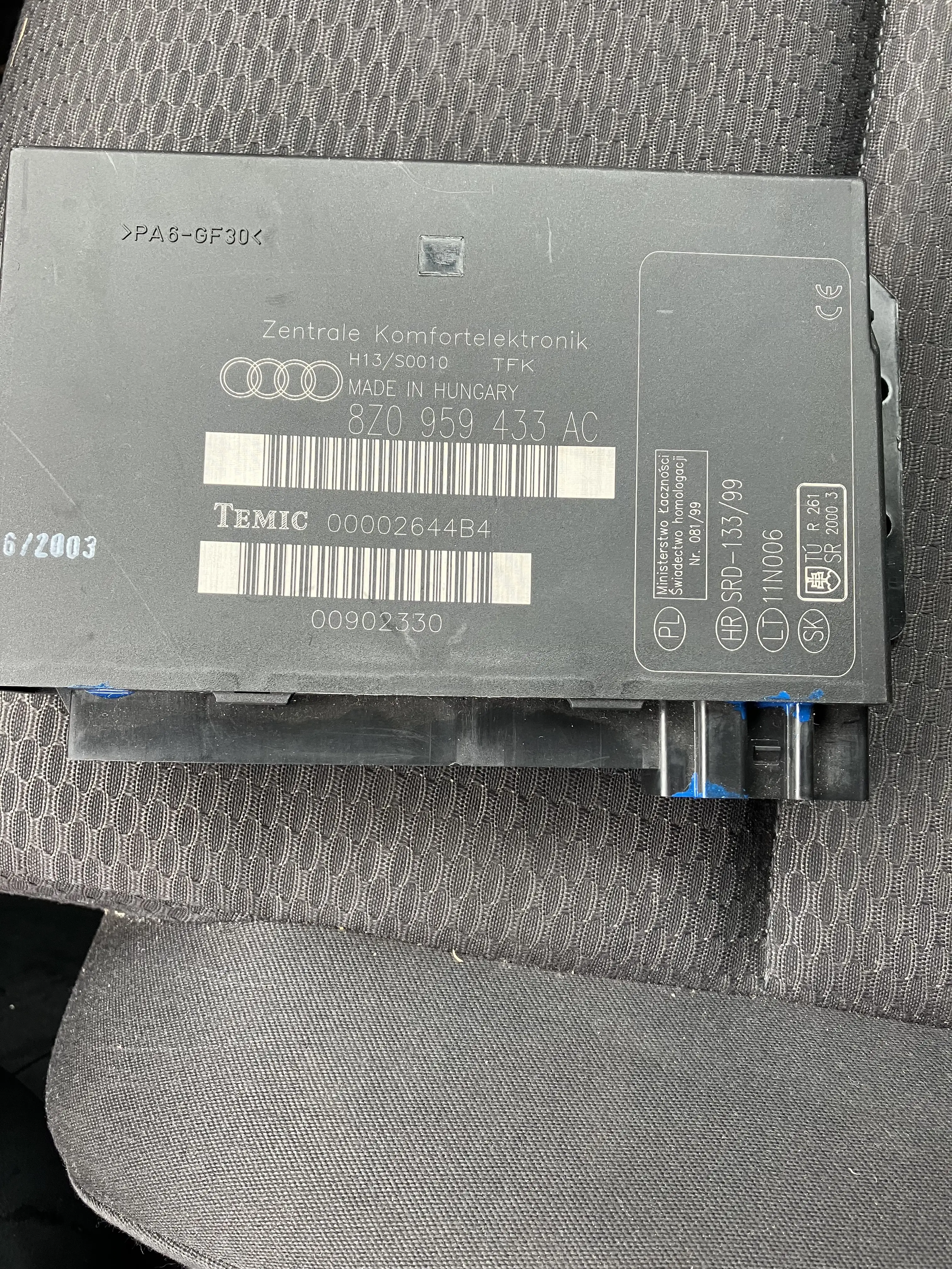 Lieben Dank Manni für deine Antwort, es ist das identische Gerät zu dem, das auch original eingebaut ist. Wie gesagt, Innenbeleuchtung würde mit diesem Gerät funktionieren, aber die Funkverriegelung nicht. Teilenummer des KSG: 8Z0 959 433AC