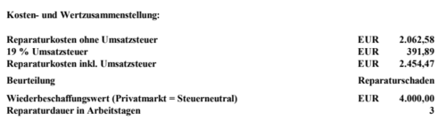 7. Steht ja dick da: Reparaturschaden. Beim Totalschaden sieht es anders aus