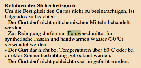 Ich habs mit Orangenreiniger gemacht, blos kein Silikonspray, das hinterlässt Flecken auf den Klamotten. Wichtig, die untere Verkleidung abbauen, dass ihr auch an die Gurtrolle rankommt und den Gurt bis zum Ende sauber bekommt. Mit nem Mikrofasertuch trockenreiben und dann komplett 1 Tag austrocknen lassen… Tun wieder wie am ersten Tag.