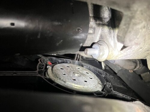 17. Halter Kühlerschlauch entfernen M13 18. Kabel Anlasser entfernen M13 19. Untere Anlasserschraube/Anlasser entfernen M18 20. Schutzblech Antriebswelle entfernen M16 21. Beide Antriebswellen am Differenzial abschrauben (diese müssen nicht vollständig ausgebaut werden) 22. Schutzblech entfernen M10 (muss nach oben gezogen werden 23. Rechten Differenzialflansch entfernen 6er Imbus (Öffnung mit einem Tuch verschließen) -