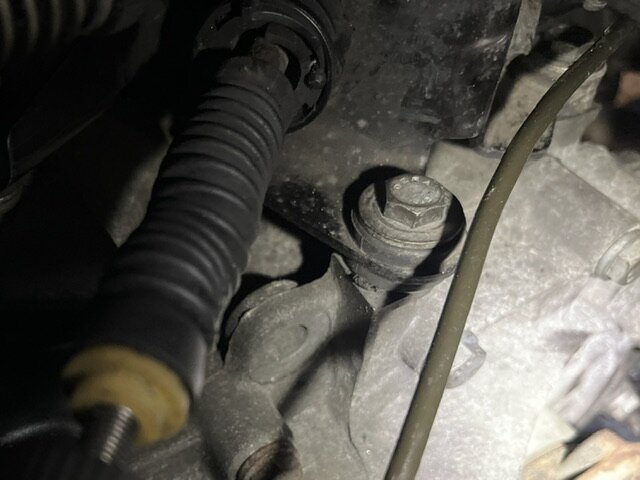 15. Anlasser einbauen obere und untere Schraube 80NM + Kabel M13 20NM 16. Halter Kühlschlauch montieren M13 20NM und Schlauch einhängen 17. Obere Kabel Anlasser montieren M13 20NM und Stecker für Anlasser und Leerlaufschalter(?) aufstecken 18. Schutzkappe Anlasser montieren mit neuem Kabelbinder 19. Kupplungsleitung einhängen 20. Letzte Getriebeschraube oben links montieren M18 80NM 21. Halter Schaltseile moniteren 3x M13 23NM 22. Umlenkhebel montieren 1x M13 23NM und Clips 23. Halteblech Kabel montieren M13 20NM 24. Strebe montieren 2x M13 23NM -