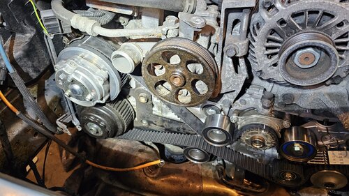 Aber dabei blieb es natürlich nicht... Damit das mal irgendwo festgehalten ist, seit April: Ölwechsel Luftfilter, Innenraumfilter, Scheibenwischer Zahnriemen neu Kühlmittel neu Kühlerschlauch neu (und Schlauchstelle kurz vor Rostbruch) Leichter Ölaustritt an Servo mit LecWec gestoppt (ja, geht!) 2 Massebänder vorne neu Weggegammelte Ankerbleche hinten neu Neue Bremsscheiben und Beläge hinten Alle Bremssattelführungen vorsorglich geprüft (...) In dem Zuge gleich alle 4 Radnaben/lager neu Weil Geräusch vorne links danach noch da: Antriebswelle dort neu Gelöstes Hitzeschutzblech über Endschalldämpfer: weggegammelte Halter neu hingetrickst Laute Überraschung letzte Woche --> Mittelschalldämpfer neu Danach endlich Getriebeölwechsel Schweller von innen gereinigt und Rostvorsorge Viel Owatrol-Öl an rostigen Fahrwerksteilen Moniceiver für Android Auto eingebaut Dachträger für 2 Spikesräder Noch fällig nach IT: Zündkerzen, Lenkrad gerade machen Spannend: Leichtes Getriebesirren (klingt schon so wie der rote...)