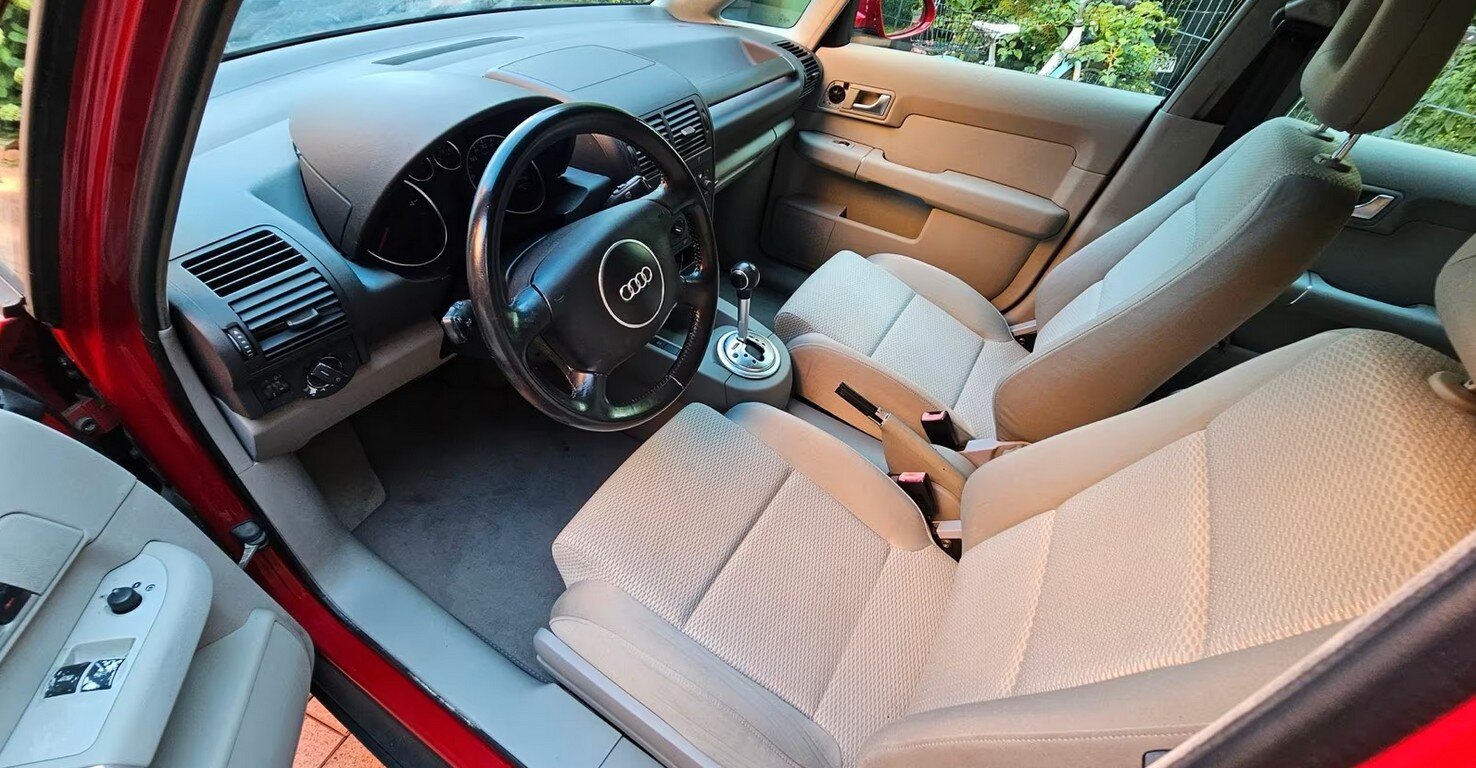 Ich wollte vor10 Jahren meinen ersten A2 kaufen aber der Händler liess sich nicht davon überzeugen, ihn nicht in den Export zu geben. Jetzt ist es eben im Mai eben soweit gewesen. Mein A2 1,4 l TDI AMF hatte folgende Problemzonen: TÜV abgelaufen Windschutzscheibe gerissen Windschutzscheibenrahmen kräftig korrodiert vorne beide Stossdämpfer undicht Domlager hakelig Servolenkung undicht Staubmanschetten an Traggelenken und Spurstangenköpfen defekt Scheibenwischergestänge ausgeschlagen Wischwaschleitungen undicht Tempomat fehlt Temperatursensor hinter dem Verdampfer defekt Heizungsgebläse etwas schwergängig Letzter Ölwechsel vor 22800 km Zahnriemen wohl auch fällig Thermostat verschlissen und öffnet zu früh Display des Fahrerinformationssystem im Kombiinstrument hat Pixelfehler Scheinwerfer matt Alle vier Reifen unter Verschleissgrenze abgefahren Bremsflüssigkeit überaltert Anlasserfreilauf rückt nicht mehr schnell aus Schalthebel schwergängig Hinterachse rostig Heckrollo fehlt Er sollte 1200 € kosten und durch die kaputte Windschutzscheibe waren es dann 800 €. Eigentlich war das ja ein Hallenfund. Also ich bin in unsere Halle gekommen, die ich mir mit ein paar Freunden teile, und dann fand ich ihn da auf dem Hebebühnenplatz. Kurz telefoniert und dann war es meiner. Typisch Impulskauf. Stossdämpfer und Lenkgetriebe sind mir aber erst anschliessend auf der Hebebühne aufgefallen. Der grösste Teil ist nun repariert und diesen Monat soll er dann durch seine Vollabnahme. -