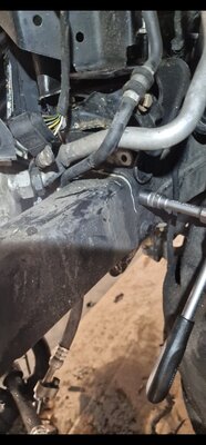 6. Hier einmal ein Bild vorher und ein Bild "wärend". Da sieht man schön wie es den ABS Block ordentlich nach hinten gedrückt hat. Der hat dauerhaft die Kupplung geöffnet. Was am meisten nervt, ist, dass die Bremsleitungen alle abgeknickt sind.