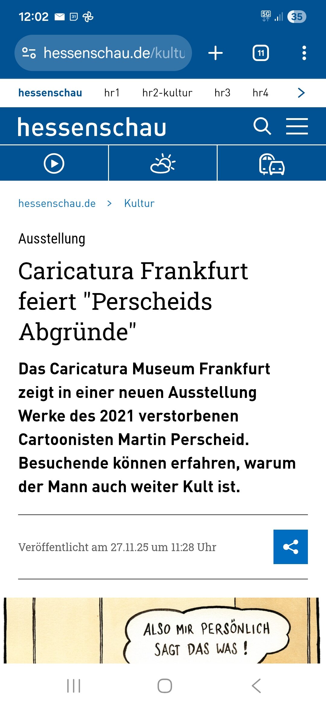 Ich platziere es mal hierhin... https://www.hessenschau.de/kultur/ausstellung-perscheids-abgruende-in-der-caricatura-frankfurt-v1,ausstellung-perscheid-caricatura-frankfurt-100.html