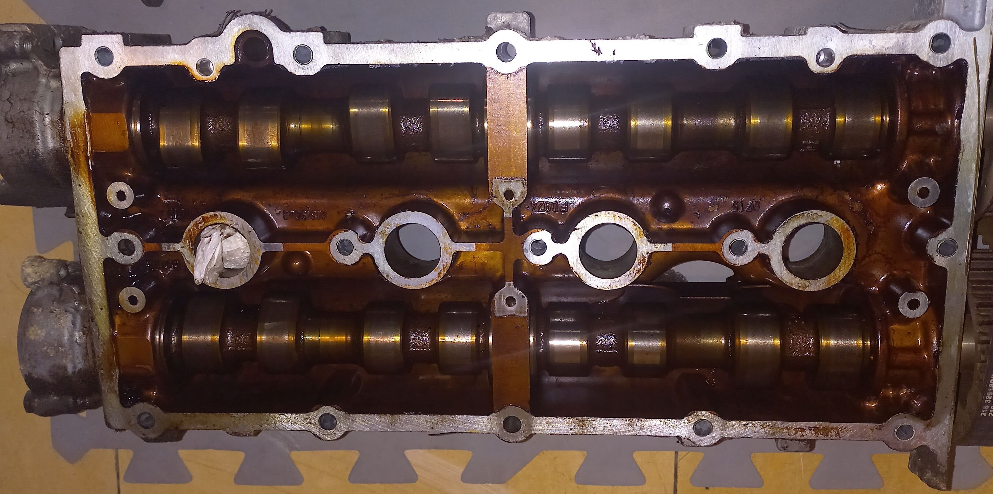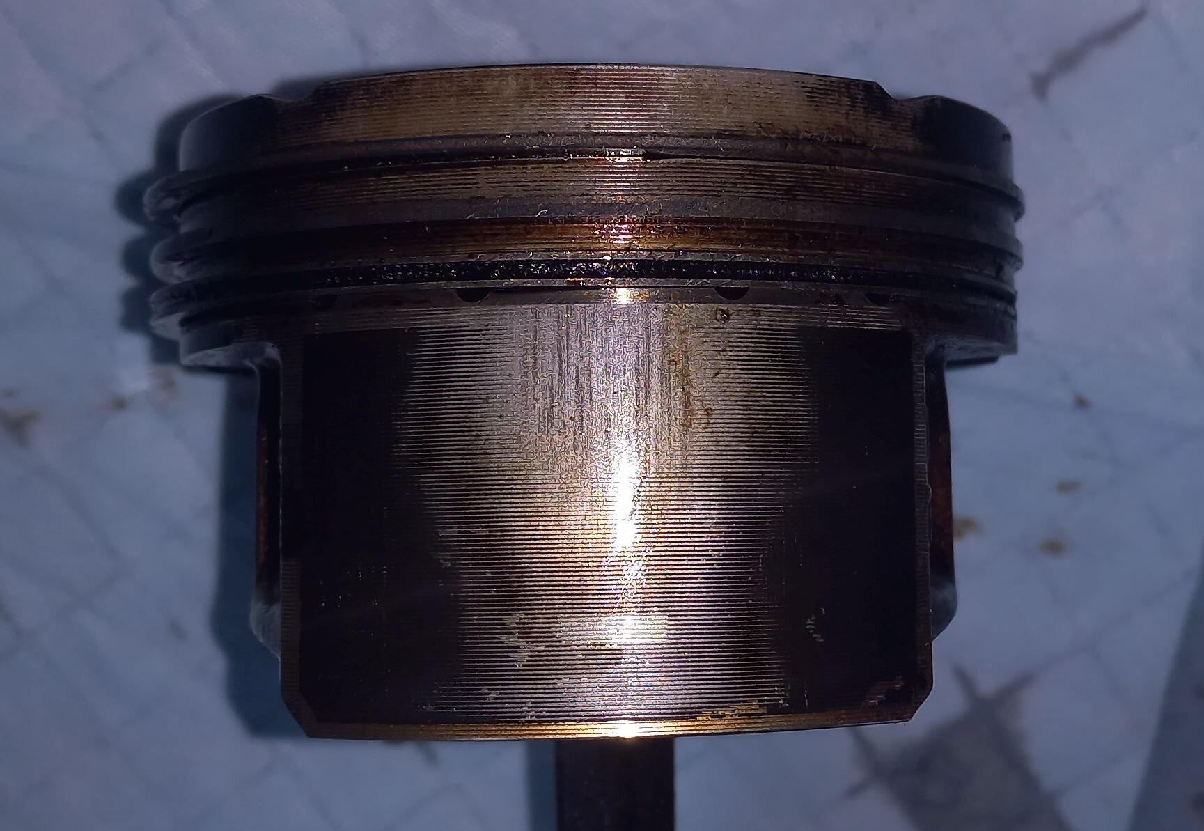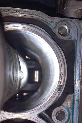 Moinsen! Vielleicht kann mir jemand ein paar Tipps zu folgendem Motorschaden geben: Motor fing plötzlich an "zu klappern", Wagen wurde in eine Werkstatt geschleppt, die einen Motorschaden (Motor fest) diagnostizierte. Es handelt sich um einen 2004er BBY mit 207 tkm. Batterie war jetzt nach monatelanger Standzeit leer und mit kurzer Knarre ließ sich der Motor tatsächlich nicht drehen. Mit langem Arm dann doch. Zahnriemen okay und stand richtig. Allerdings ging dann wieder nichts. Also doch "fest"? Motor wurde ausgebaut. Eigentlich nur, um der helfenden Hand zu zeigen, dass sich der Motor nicht drehen lässt, habe ich den langen Arm nochmals angesetzt und er ließ sich drehen. Kurzerhand doch den Anlasser benutzt und da es keine Probleme gab, gleich Kompression gemessen. Die Werte waren nicht gut: zwischen 4 und 7 bar. Inzwischen ist der Motor komplett zerlegt. Leider habe ich keine Ursache für das zeitweise Blockieren gefunden. Eventuell kann mich da jemand auf die richtige Fährte setzen? Ein paar Fotos von Zylinder 1 mit Abnutzungen (die anderen haben geringere), dem Kopf, den Nockenwellen, Pleuellagerschalen Zylinder 1 (sehen alle so aus) und der Zylinderwand 1. Thomas