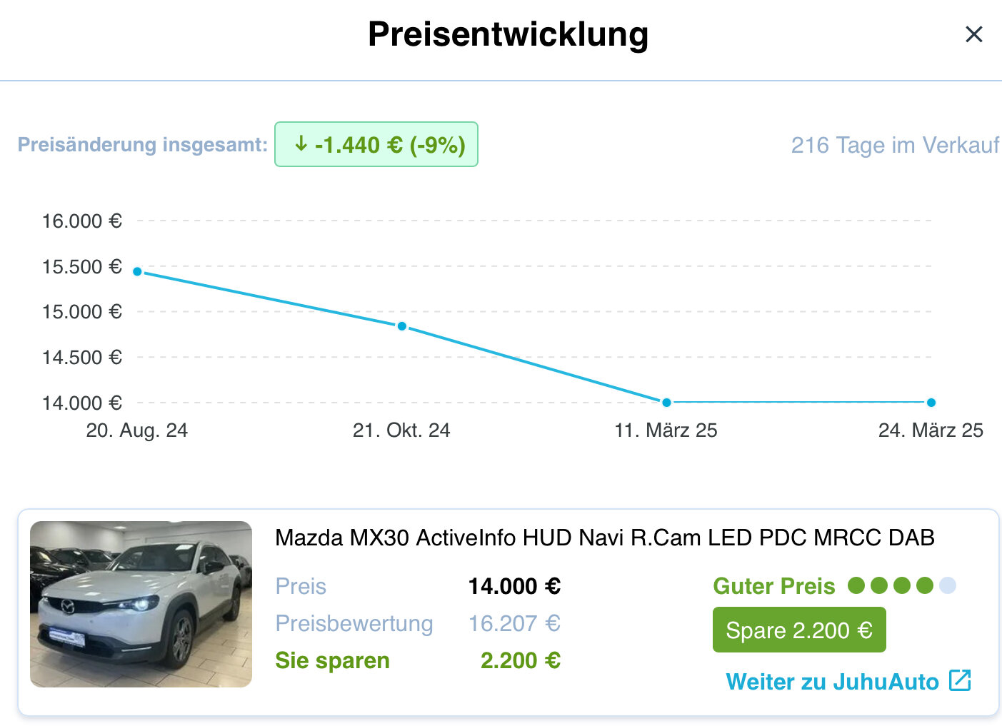 Der steht in der Tat wie Blei auf dem Hof.Ich hänge mal den Preisverlauf lt. autouncle.de an.