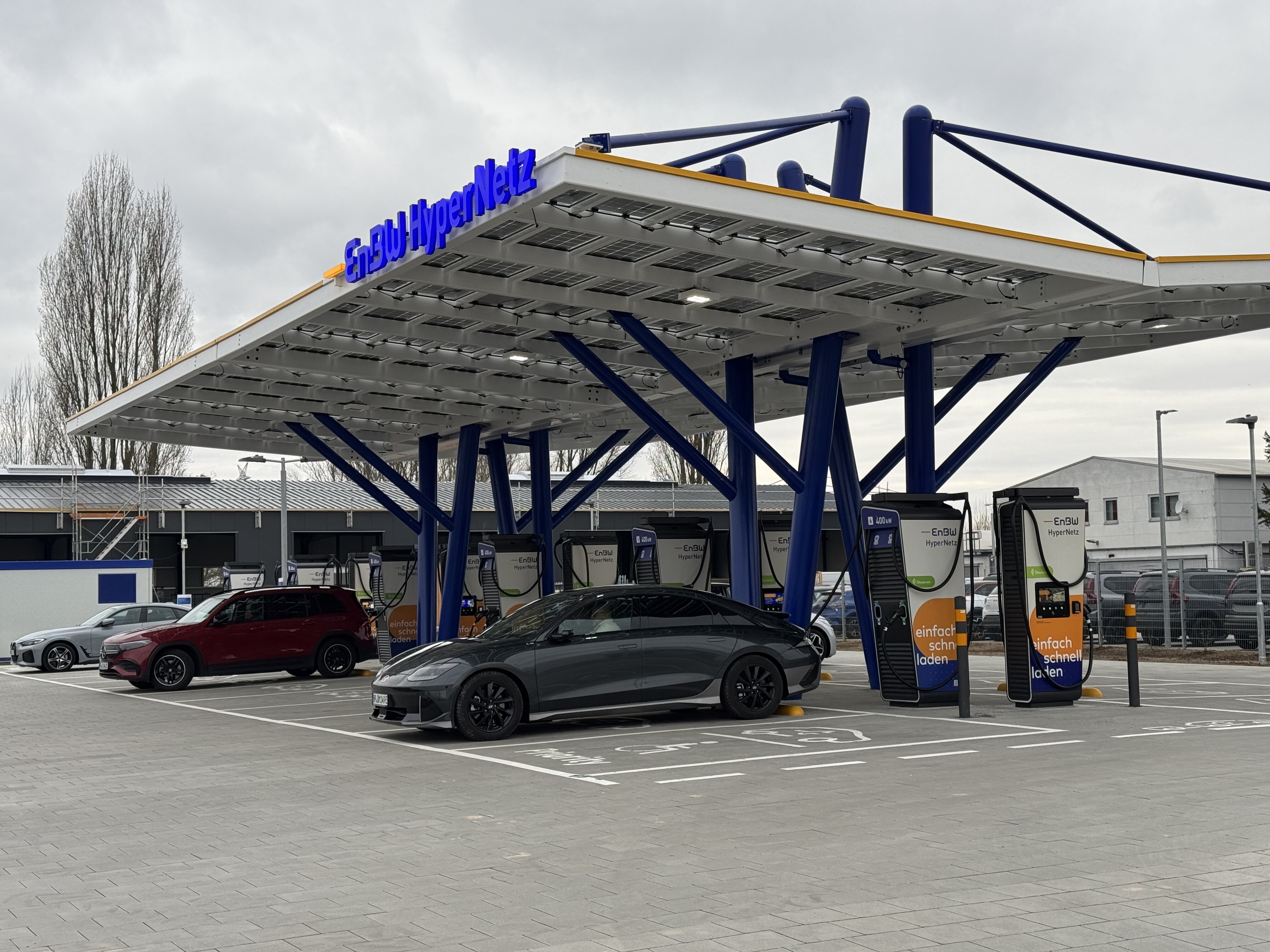 Das anhängende Foto zeigt den EQB im nagelneuen Ladepark der EnBW in Bensheim.